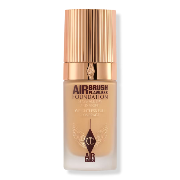 A base Airbrush Flawless da Charlotte Tilbury, com acabamento 3D matte e efeito blur, oferece até 24 horas de cobertura total e controle de brilho.