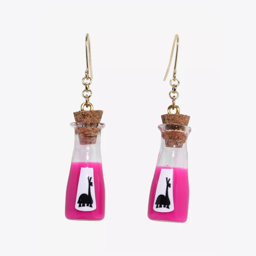 Eles não são o veneno para Kuzco, mas são muito fofos! Inspirados em "A Nova Onda do Imperador", estes brincos de gota apresentam frascos de vidro com extrato de lhama, com detalhes de líquido e cortiça.