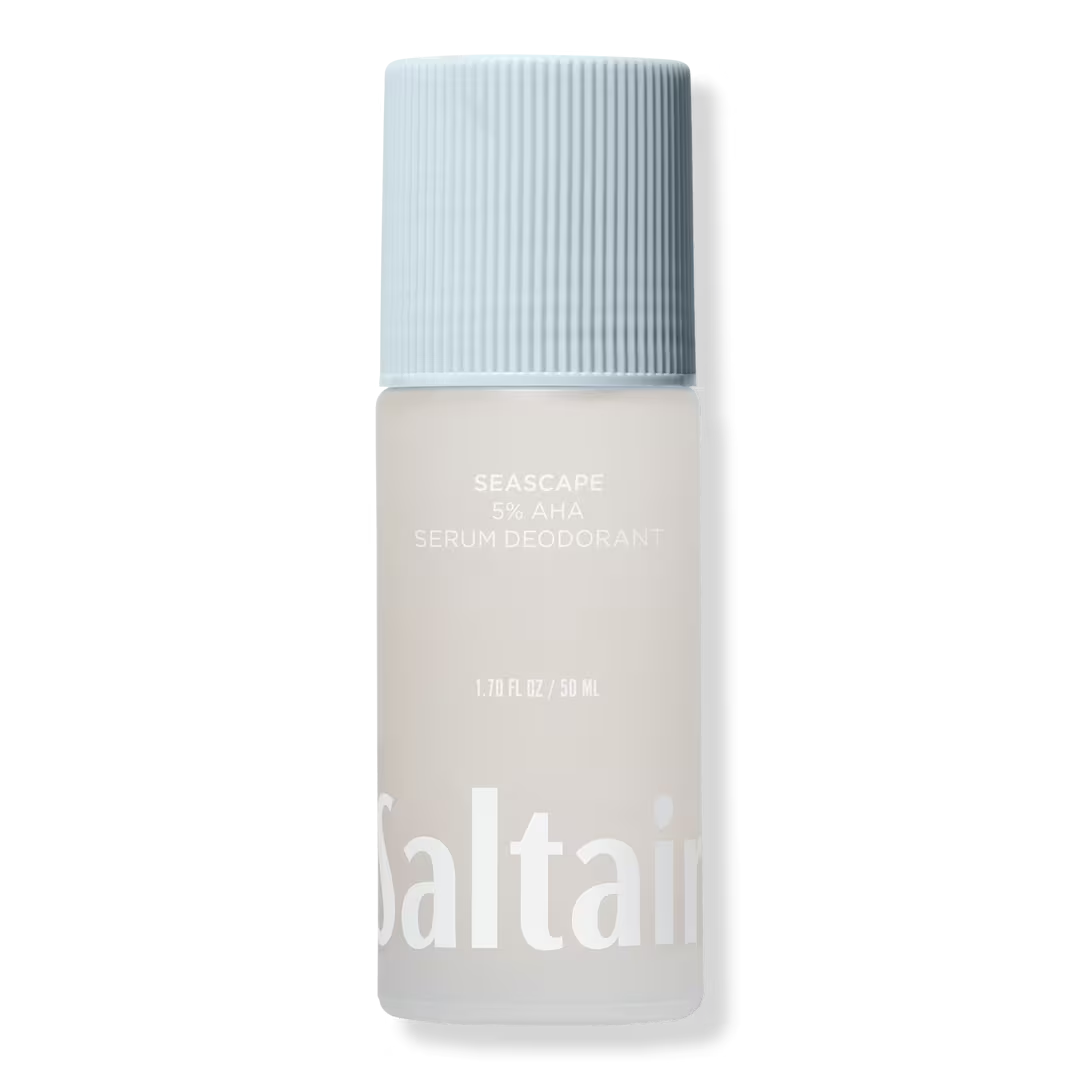 O desodorante sérum com 5% de AHA da Saltair foi formulado para combater o odor, clarear a aparência de manchas e suavizar a aparência de pelos encravados.