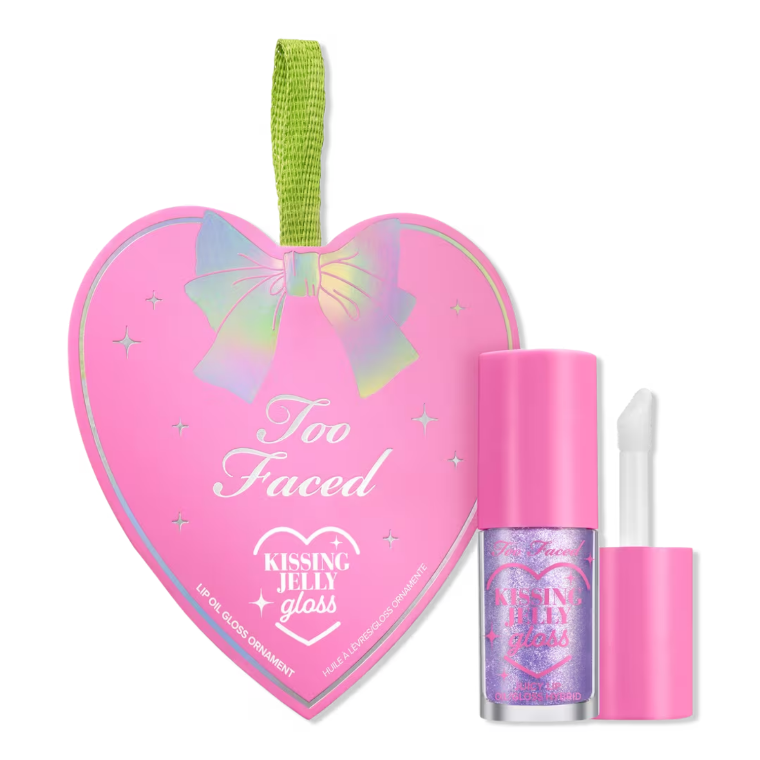 O enfeite de gloss labial Kissing Jelly em tamanho real e edição limitada da Too Faced é o presente perfeito para qualquer ocasião festiva.