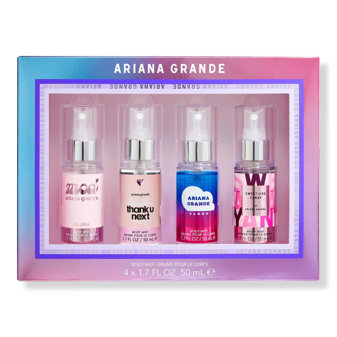 Faça-os sorrir com esta irresistível coleção de miniaturas de fragrâncias da Ariana Grande! Perfeita para quem ama perfumes!