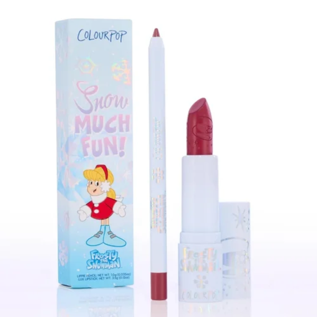 Este é um kit labial em edição limitada da coleção Colourpop x Frosty the Snowman inspirado no tema de férias e clima de inverno, com a fofura clássica do Frosty. A proposta do kit é entregar um look natalino elegante e festivo com uma combinação perfeita de lápis labial e batom cremoso.