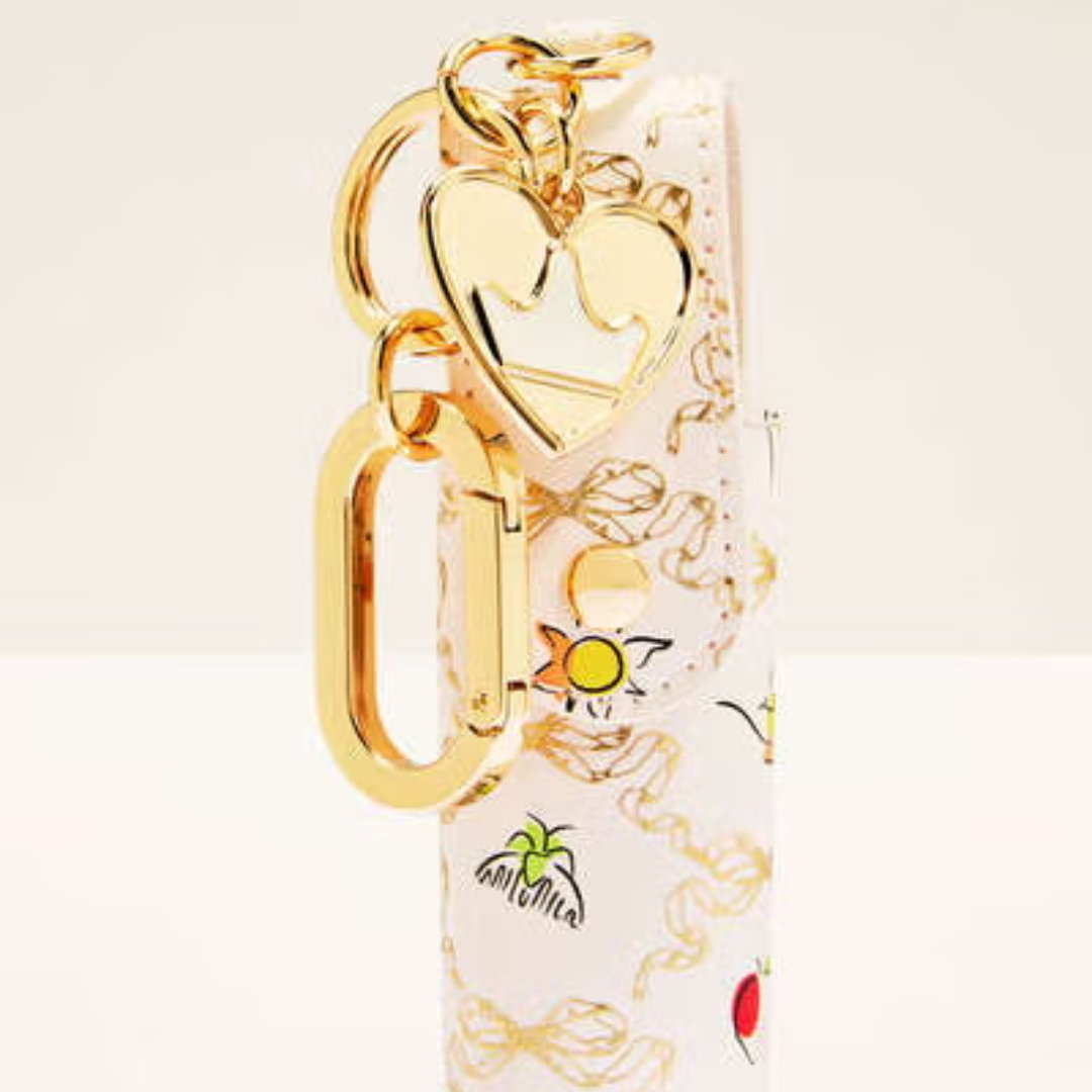 Consiga o bocão perfeito de princesa onde quer que sua história a leve com este encantador porta-gloss. Seu padrão metalizado dourado com ícones coloridos destaca cada princesa e dá ao seu gloss favorito um tratamento real.