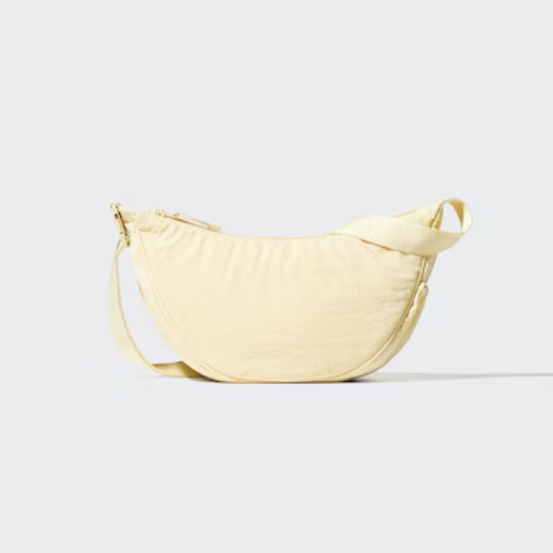 Nossa Mini Bolsa de Ombro Redonda é uma bolsa transversal compacta, projetada para o uso diário, com linhas simples e opções de uso flexíveis para deslocamentos, viagens e compras de fim de semana. O tecido de nylon casual possui uma textura naturalmente enrugada, e a alça ajustável com fivela facilita o uso sobre camadas de roupa de inverno mais grossas ou o encurtamento para uso na mão. O formato com fole e pregas laterais cria espaço para itens essenciais sem parecer volumoso, e o acabamento repelente à água ajuda a lidar com condições leves do dia a dia. Observe que o acabamento não é permanente.
