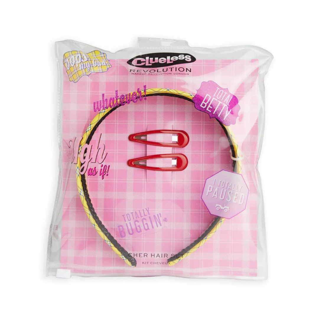 Procurando um traje Clueless ou apenas quer viver como Cher Horowitz todos os dias? Coloque as mãos no Cher Hair Set, incluindo a icônica faixa xadrez amarela e preta e dois grampos de cabelo de metal vermelhos. Este conjunto combina perfeitamente com a mini paleta de sombras Cher, as unhas postiças Cher e a bolsa Tartan Cosmetics.