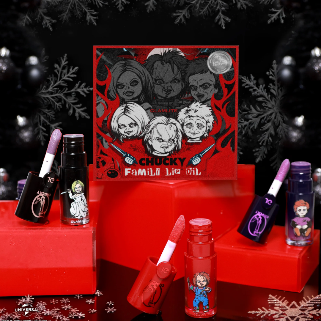 Embalado em uma luxuosa caixa de colecionador Chucky, este conjunto de presente matador vem com 3 óleos labiais, inspirados na família do terror definitivo - Chucky, Tiffany e Glen. Esses óleos labiais são infundidos com manteiga de karité, óleo de jojoba, vitamina E e extrato de chá verde para nutrir, proteger, curar e dar a você os lábios mais suculentos! O conjunto de presente perfeito para qualquer colecionador Chucky e o melhor presente de Natal para fãs de terror!